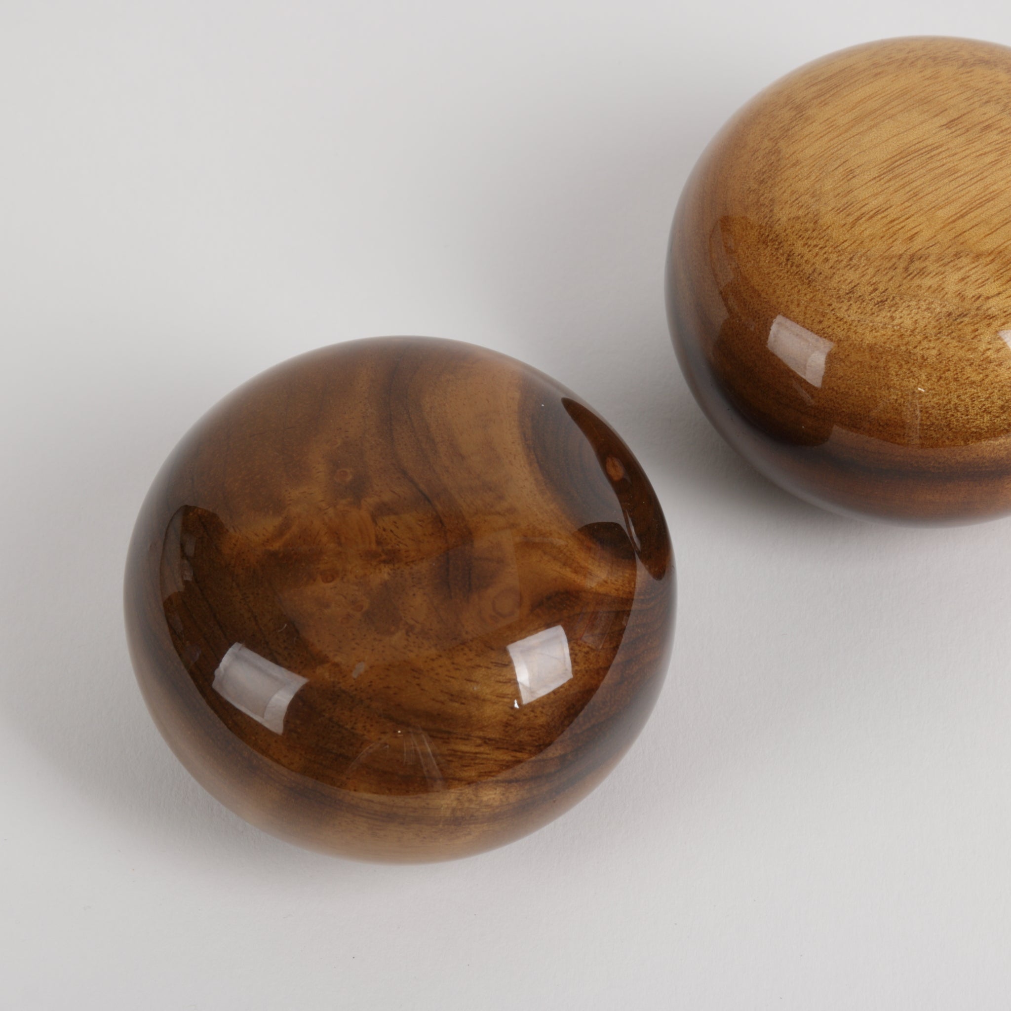 Vintage polished Myrtlwood paperweights with original felted bottoms. Set of 2, made in USA.