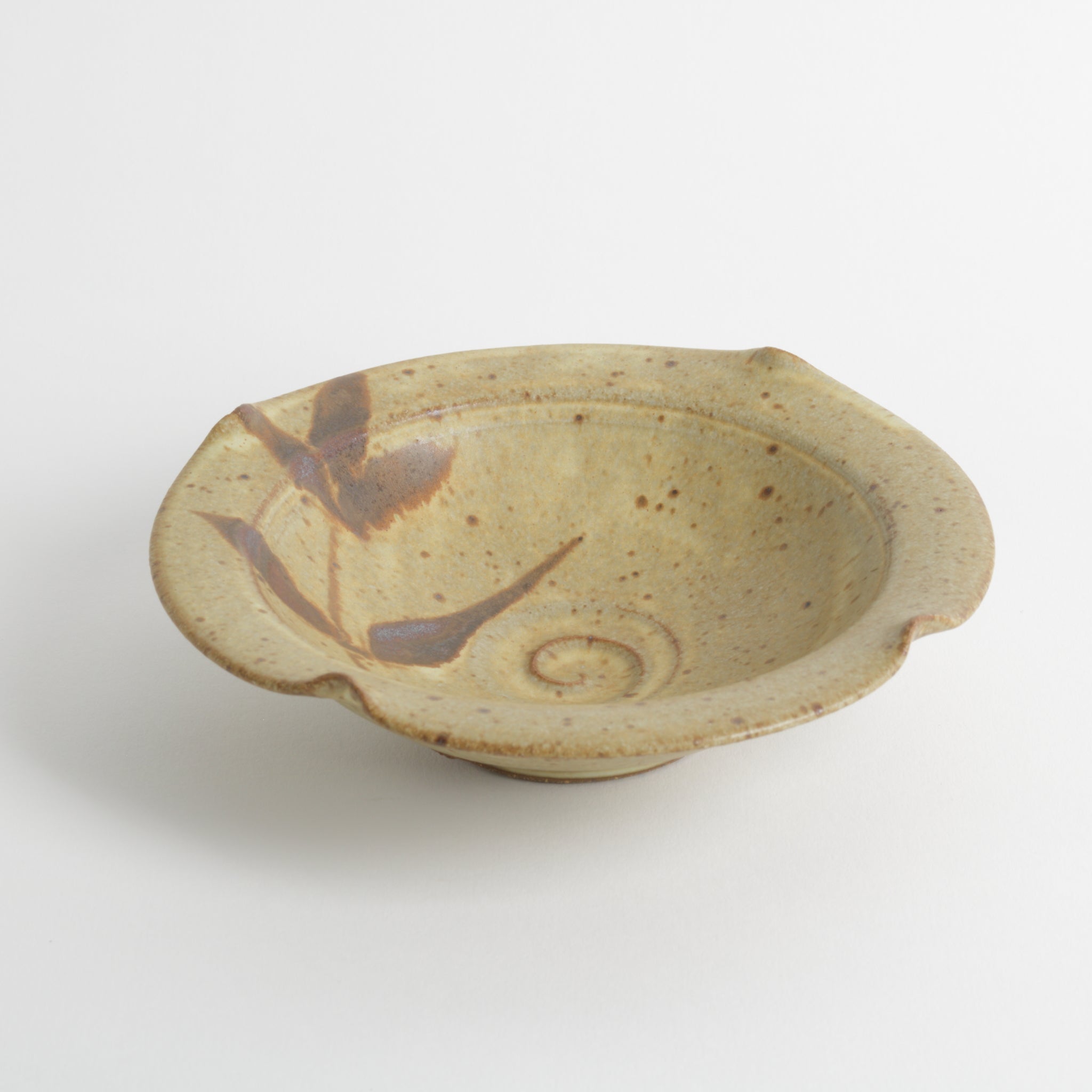 Small studio pottery dish by Northwest artist Reid Ozaki. Autumn speckled glaze with matte rust foliage, bearing the artists stamp. Exceptional.
