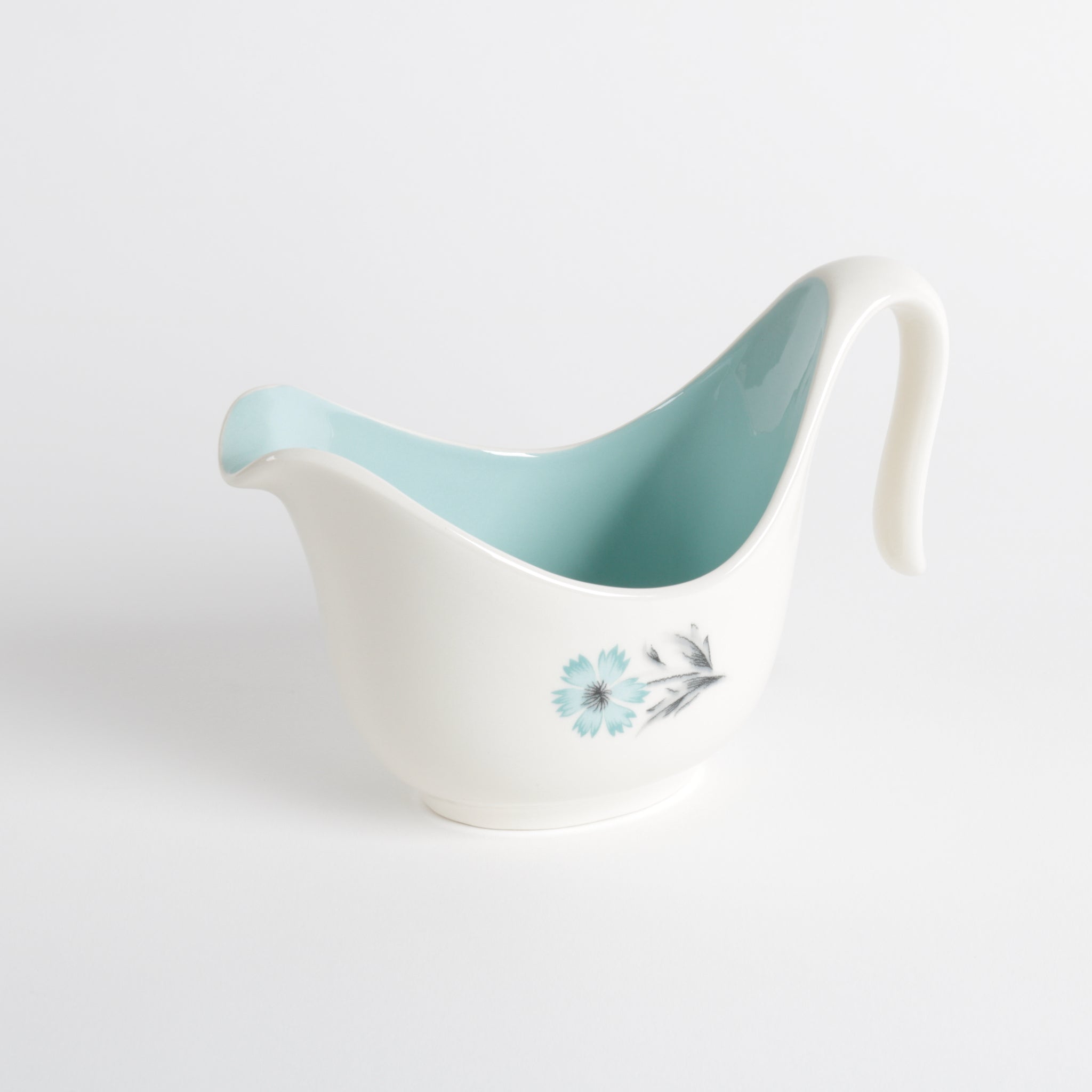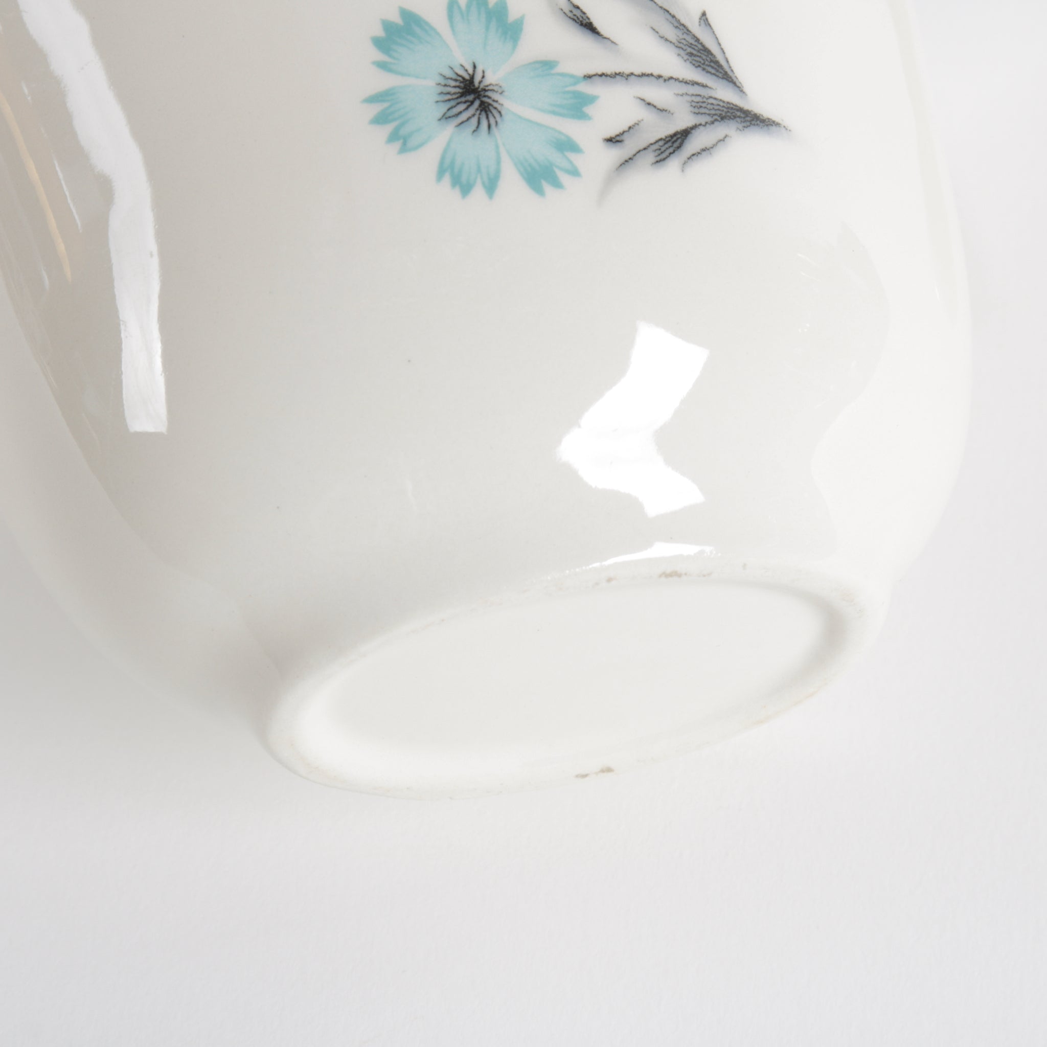 Vintage creamer by Taylor, Smith and Taylor. Antique white, classic Blue Bonnet boutonniere floral pattern, unmistakable and timeless late 1950's design. A well preserved example, minimal checking - We recommend hand wash only.