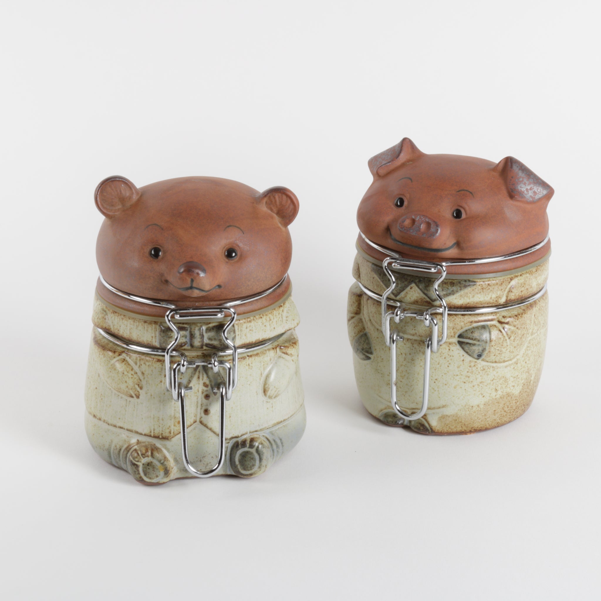 Vintage set or 2 Japanese ceramic canisters by UCTCI. Air-tight storage great for coffee, tea, rice, chia seeds. Vintage redware, in exceptional condition with original labels.