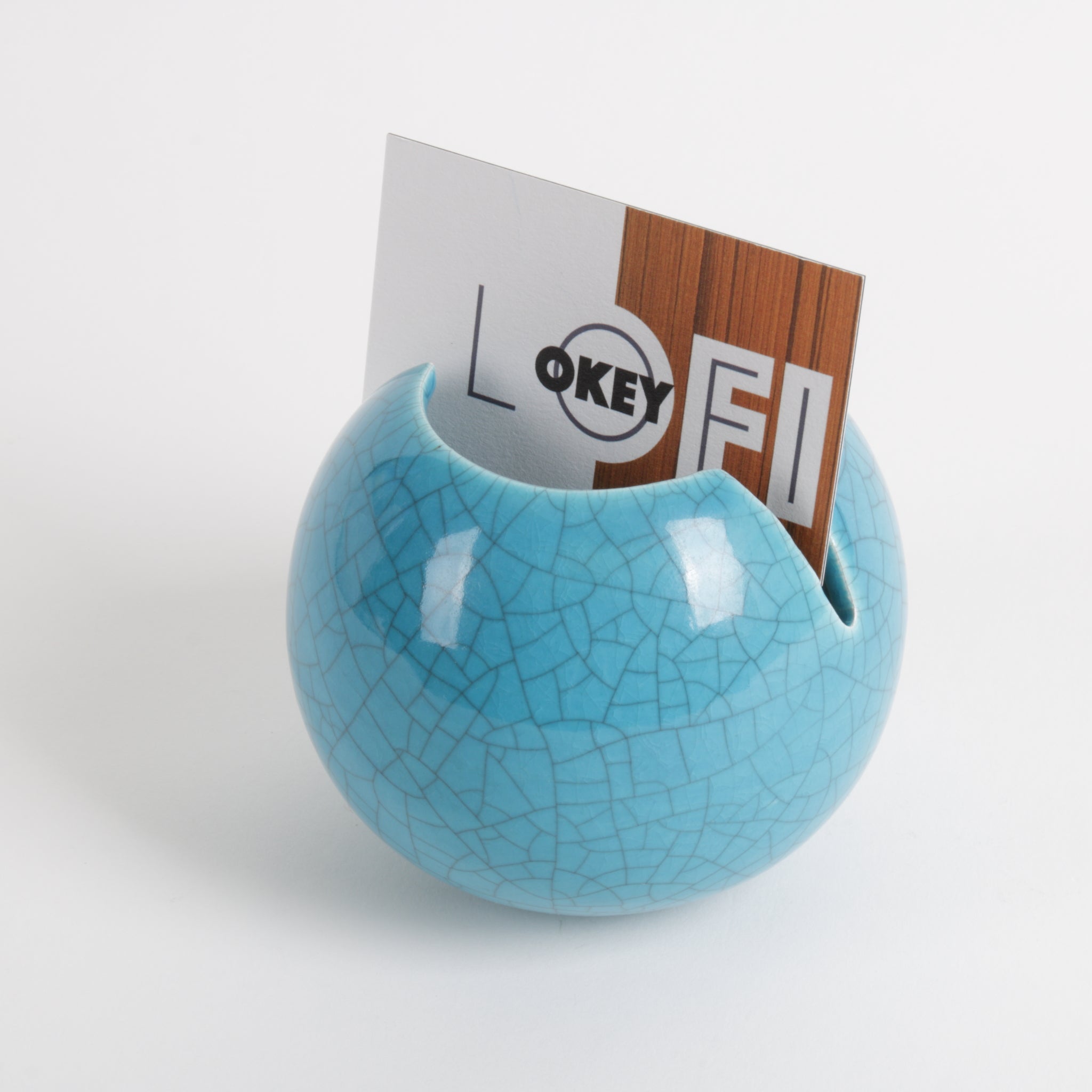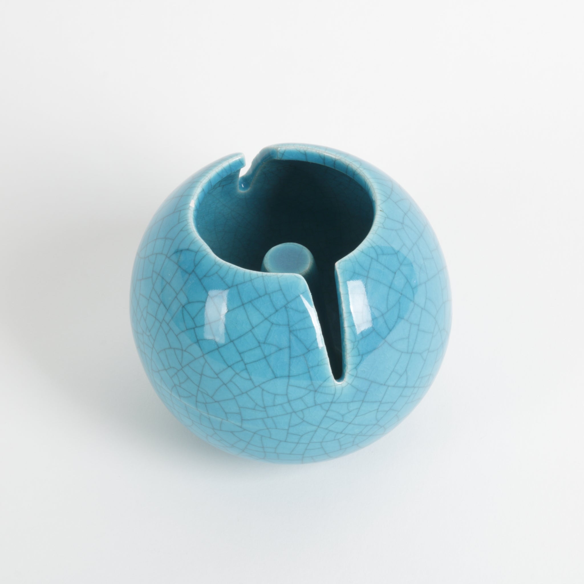 Mid century Hoodwink ashtray by Vohann of California. Crackled turquoise glaze, two opposing rests. Hand made.